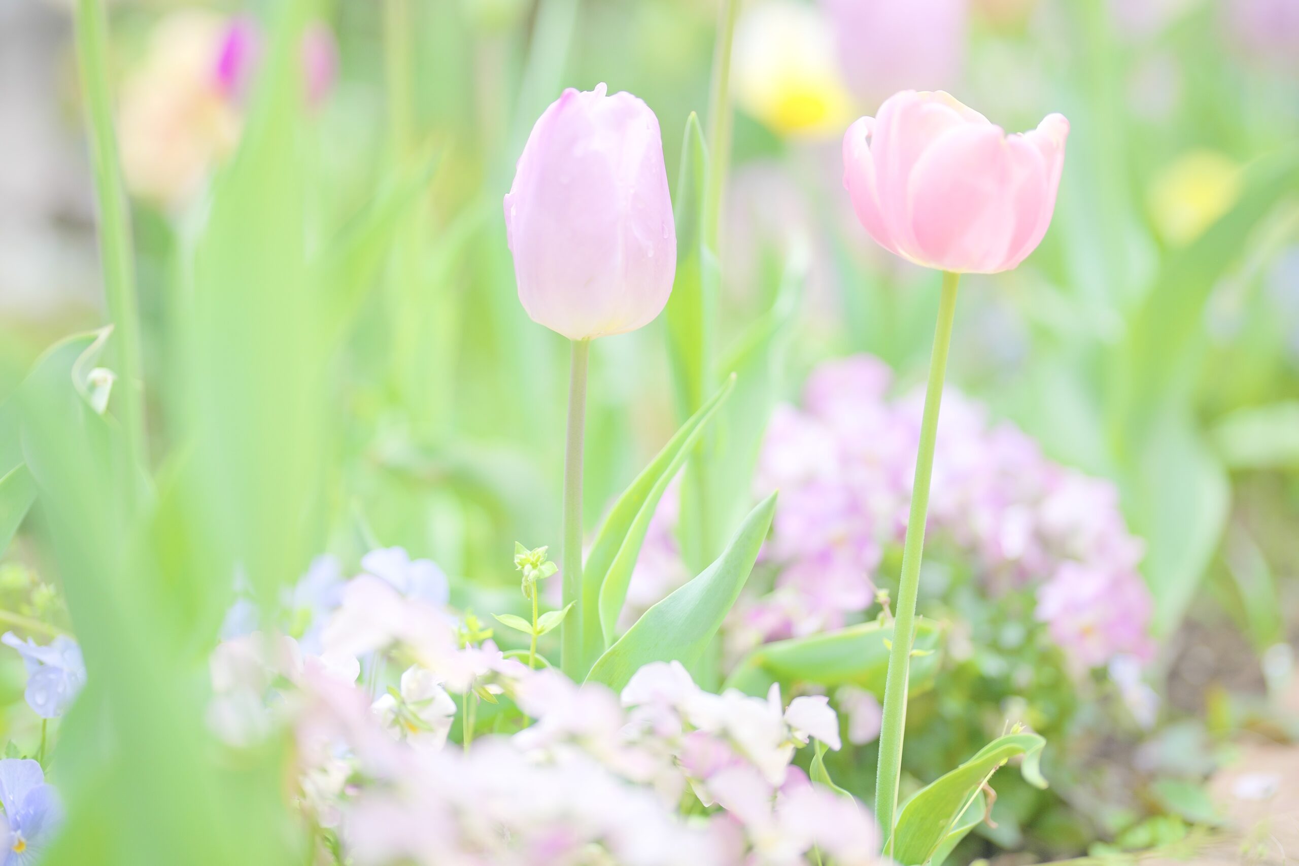 ガーデンに咲くチューリップは、先日お台場で見たものとはまた違う雰囲気で、